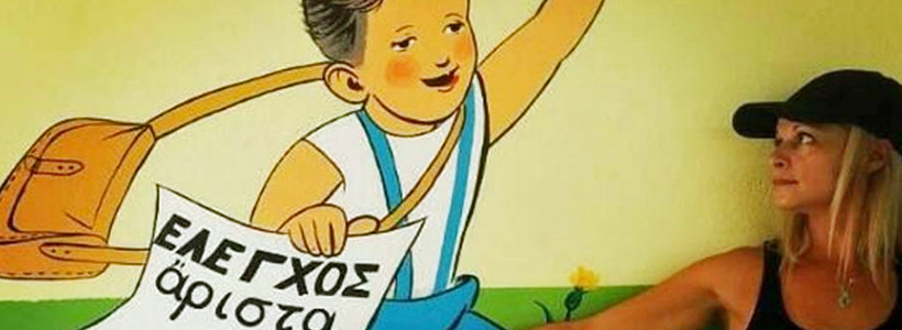 Μας ενημερώνει από την Νάξο, για ένα σχολείο γεμάτο χρώματα και εικόνες απ το παλιό μας Αλφαβητάρι. Θυμάστε; Εκείνο με το να «Άννα, να ένα μήλο»… Πρόκειται για το 2ο Δημοτικό Σχολείο της υπέροχης Χώρας Νάξου, στους τοίχους του οποίου η Λία Κουτελιέρη, εικαστικός και εκπαιδευτικός με καταγωγή από τη Νάξο ζωγράφισε ένα μαγικό κόσμο βγαλμένο από την παλιά ανακάλυψη της γνώσης των Ελληνόπουλων, με εκείνο το αγαπημένο Αλφαβητάρι μας, με την Άννα, τη Λόλα, την Έλλη, τον Σγουρό παρέα μας, στους πρώτους συλλαβισμούς. Η εικαστικός και εκπαιδευτικός εμπνεύστηκε εδώ απ την παιδική αθωότητα, το φως των Κυκλάδων, τη χαρά της πρώτης γνώσης και του παιχνιδιού, ενώ ήδη, στην Αθήνα, συνεχίζει τη δουλειά της στις μεγάλες επιφανείς δουλεύοντας στο διεθνές γκράφιτι «Μικρό Παρίσι των Αθηνών» με βασικό της θέμα «Cabarets du monde», δηλαδή «Καμπαρέ του κόσμου». Η Λία Κουελιέρη δήλωσε τη χαρά της για το ότι «τα παιδιά θα μπουν σ’ ένα ολοκαίνουριο σχολείο, γεμάτο ζωγραφική κι άρωμα μιας άλλης εποχής. Εγώ αισθάνομαι ήδη υπέροχα εδώ μέσα… στον παραμυθένιο κόσμο που ζωγραφίζω». Η κα Κουτελιέρη, μιλώντας στον ραδιοφωνικό σταθμό Aegean Voice 107.5 και στην εκπομπή Carpre Diem ανέφερε ότι αποδέχθηκε με μεγάλη χαρά και συγκίνηση αυτή την πρόταση καθώς θεωρεί τα αλφαβητάρια μεταφέρουν σπουδαία ιστορία και τόνισε την ανάγκη ώστε οι τοίχοι όλων των σχολείων να έχουν χρώματα ώστε να ομορφαίνει η καθημερινότητα των παιδιών. «Και ζωγράφιζα…Και ζωγράφιζα για τα παιδιά…Και σταματημό δεν είχα…!!! Για τα παιδιά…για τους μεγάλους…για την γαλήνη της ψυχής μου…!!! Κι άφηνα εκεί μέρος της ψυχής μου…!!!». Ακούστε τη συνέντευξη και θαυμάστε κάποια από τα γκράφιτι που κοσμούν το 2ο Δημοτικό Σχολείο Νάξου