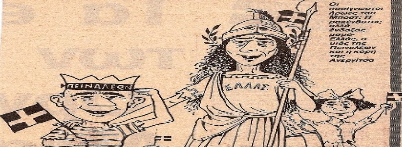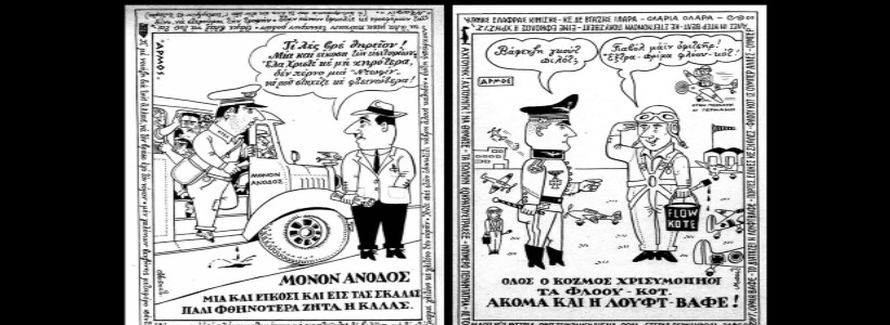 Ξεχωριστοί ήρωες του στα σκίτσα του η Μαμά- Ελλάς, ο Πειναλέων και η Ανεργίτσα. Το 1961, όμως, η Ελένη Βλάχου θα σταματήσει την συνεργασία τους λόγω του κειμένου του, «Το επάγγελμα της μητρός μου», το οποίο θεωρεί πως «ξέφυγε από τα όρια της ευπρέπειας». Εφημερίδες «Ελευθερία» και «Αυγή» και άλλες πολλές εφημερίδες και περιοδικά και συνεργασίες και πολλές, πολλές μηνύσεις –αλλοίμονο!- για τις πολιτικές του γελοιογραφίες. Θα ανοίξει το δικό του κατάστημα δώρων με την επωνυμία «Λαϊκαί Εικόναι», όπου θα ζωγραφίζει πάνω σε περισσότερα από 27.000 είδη δώρων, θα φτιάξει πίνακες και ανορθόγραφες επιγραφές, στιχάκια και αφιερώσεις. Χούντα. Το 1973 δημοσιεύει αντιδικτατορικά σκίτσα και κείμενα στο Αντί και Ταχυδρόμος.
